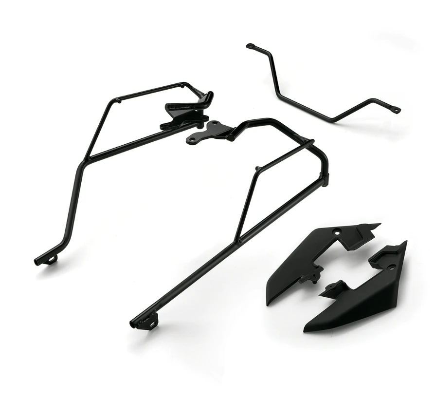 Maximale duurzaamheid en functionaliteit. Zeer resistent materiaal. Zandstraling en kataforese tegen roestvorming en slijtage. Voor de montage van de zijkoffers. Bijzonder geïntegreerd ontwerp.