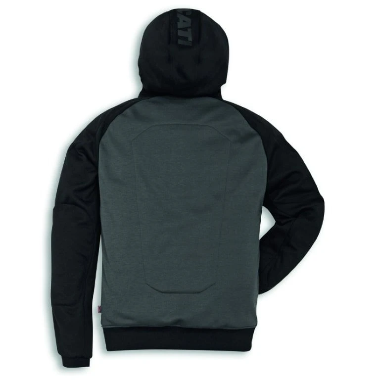 Ducati heeft CE-goedgekeurde protectoren op de schouders en ellenbogen verwerkt in het stijlvolle design voor het bieden van uitstekende bescherming. Deze bescherming is uit te breiden met een apart verkrijgbare rugprotector waar de hoodie op voorbereid is.