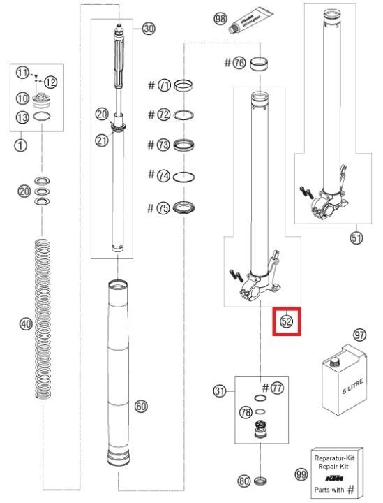 Binnenpoot vorkpoot rechts voor een KTM 990 Adventure/S van 2007-2008