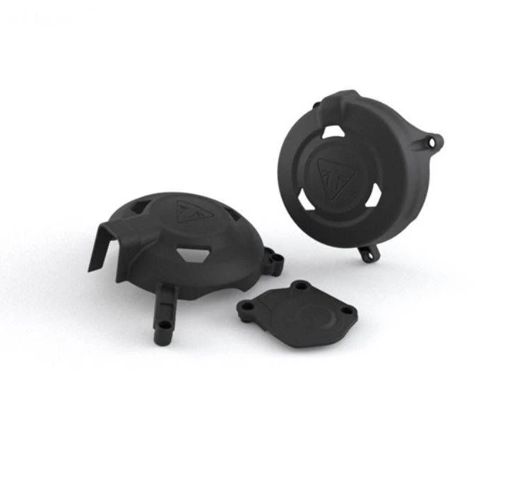 Motorbeschermers uit Duurzaam nylon, met een getextureerde afwerking, ontworpen om direct op de bestaande motoromhulsels te passen.